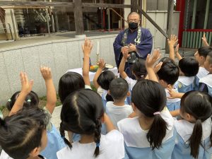 雲龍寺住職と光明第五保育園の園児達が一緒に迎え火を行いました。