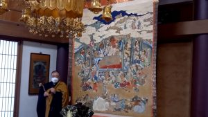 ~涅槃図を前に住職が子供たちにお話をしている様子~