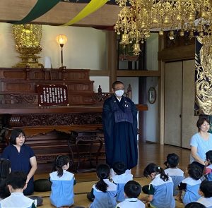 坐禅終了後、雲龍寺住職より、保育園の今月の教え「報恩感謝」の法話を行いました。心から感謝する大切さ、また受けた御恩に対してしっかりと報いる大切さをお話しさせていただきました。