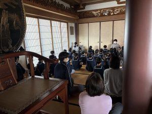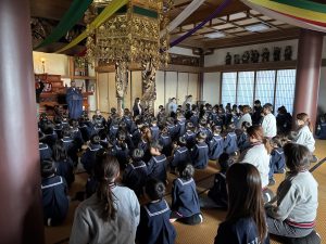 12/18(水)、光明第一保育園、光明第六保育園、光明第七こども園、光明第八こども園、府中市の光明高倉保育園、雲龍寺境内にある光明第五保育園の大勢の園児達が参加する年内最後のこども坐禅会を開催いたしました。坐禅終了後、雲龍寺住職より、保育園の今月の教え「忍辱持久」の法話を行い、耐え忍ぶ事、健康を保つ大切さを認識する貴重な会となりました。