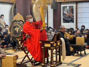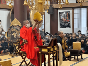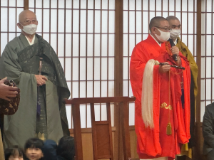 御祈祷の終了後、保育園の園児達は、先生方の引率の元、スタンプラリーとして大達磨大師様、七福神様など境内各所を廻り、笑顔で各保育園に帰られました。雲龍寺住職からは、今年の干支、今年の文字「円相」より人の輪を大切にする事、今年の大切な心構えをお話させていただきました。