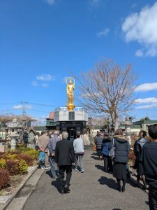 ご供養したお塔婆は彼岸の期間中、午前9時~午後4時半まで光明観音永代供養塔前に並べておりますので、